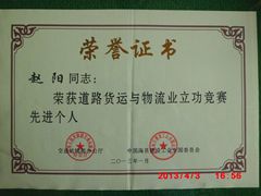 2013年4月2日,公司董事長趙陽在“道路貨運與物流業(yè)立功競賽”活動中,被交通運輸部辦公廳和中國海員建設(shè)工會全國委員會聯(lián)合授予“先進(jìn)個人”榮譽稱號。